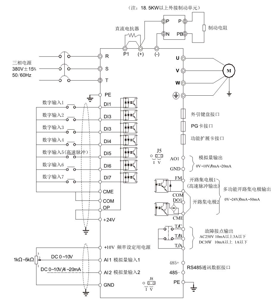 4.多種速度控制方式:模擬量輸入0-5VDC,0-10VDC,0/4-20mA;面板電位器調(diào)速(更改參數(shù)可設(shè)置上下按鍵調(diào)速);外接電位器調(diào)速;可通過(guò)485通訊調(diào)速。